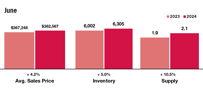 The Median Sales Price was up 6.8 percent to $315,000 for existing homes but decreased 1.4 percent to $532,229 for new homes. Days on Market increased 31.6 percent for existing homes and 11.3 percent for new homes. Supply increased 20.0 percent for existing homes but increased 8.3 percent for new homes.