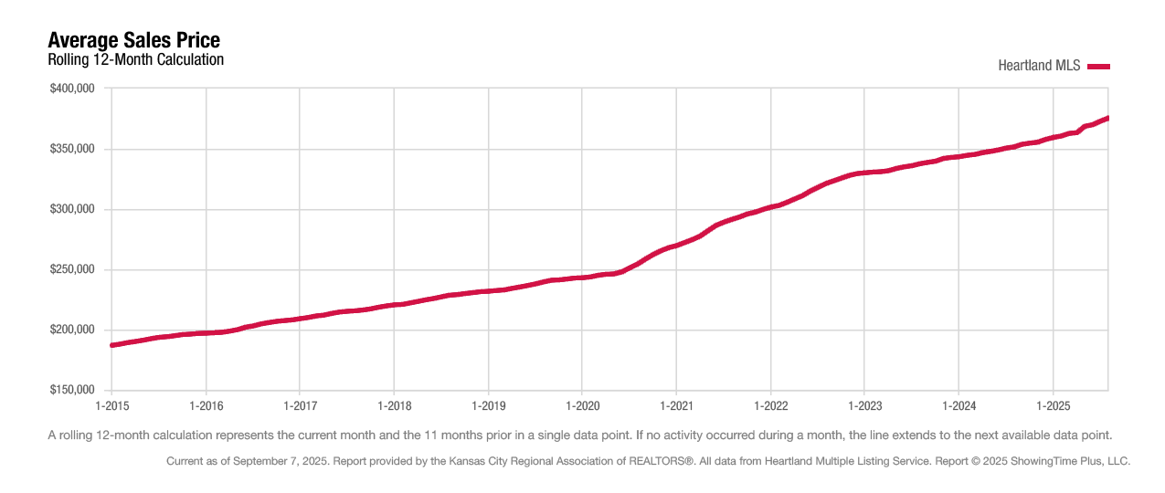 In the Kansas City metro area, the year-to-date average home sales price is $382,064, and the median is $325,000, which hits well below the current national median of $422,400, keeping homeownership affordable in Kansas City!